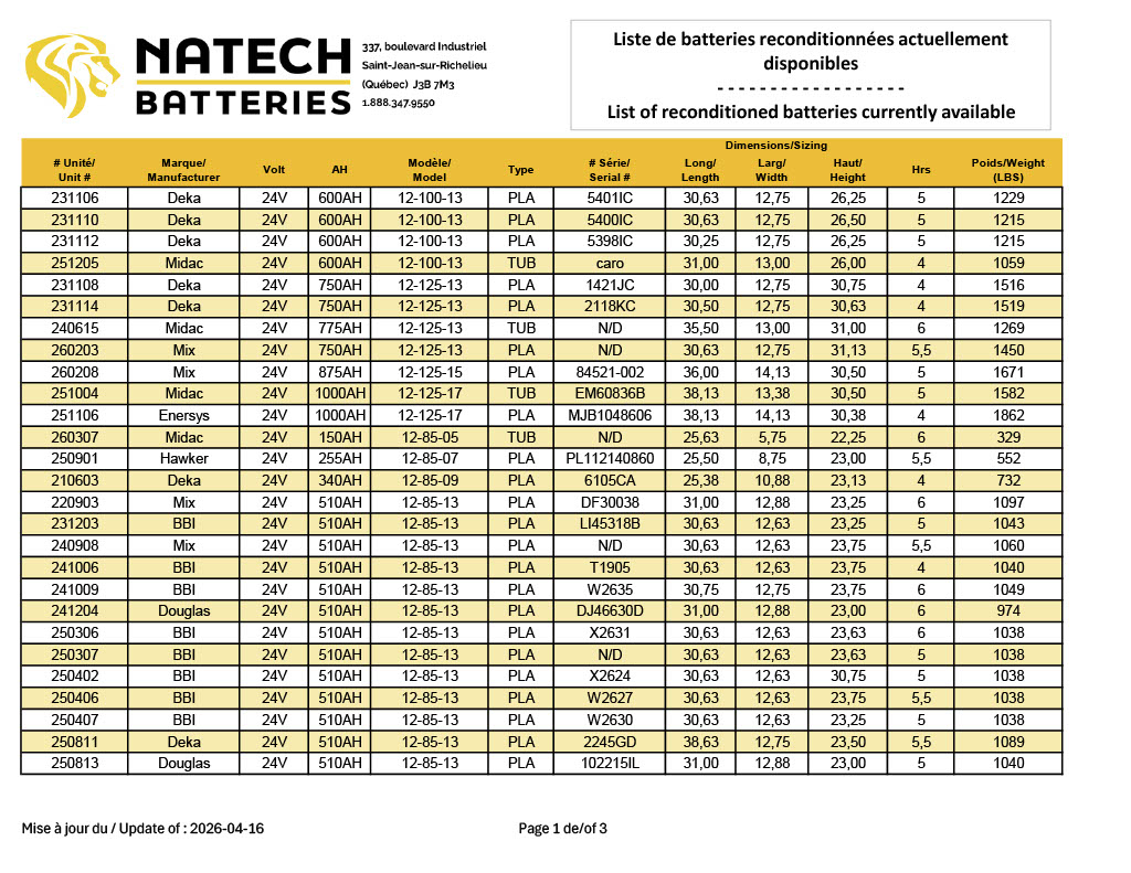 Are you concerned about the environment and want to benefit from all the advantages of a quality battery while respecting your budget? Look no further! Check out our inventory of our reconditioned batteries.